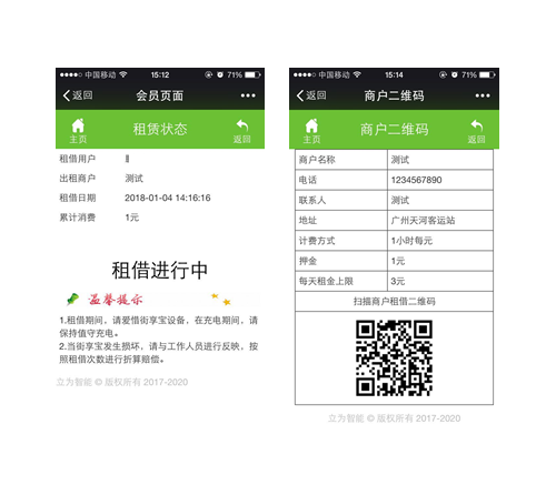 租借平台强大,支持微信和支付宝支付,扫码租借,流程简单安全.